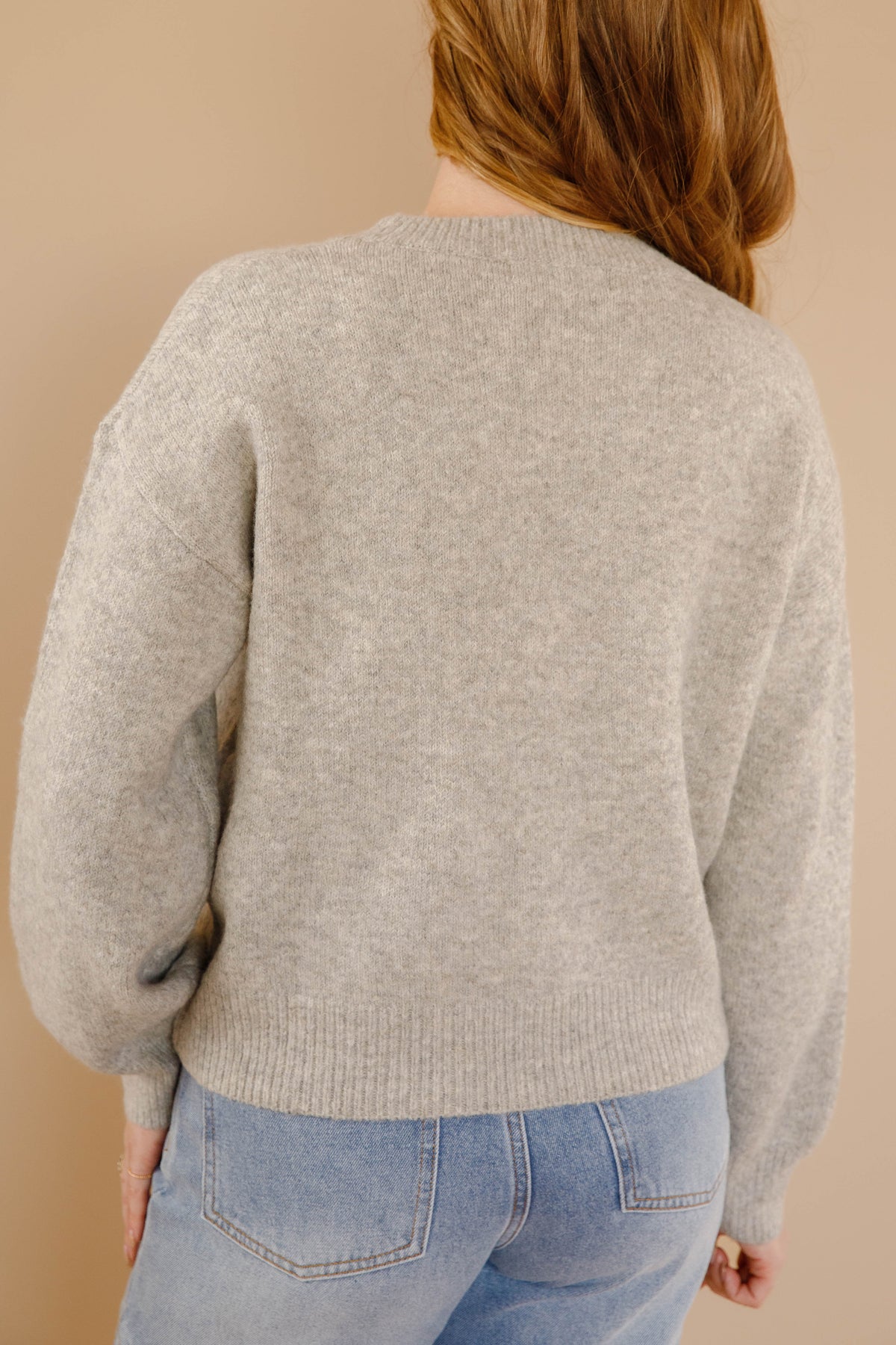 Cozy up in this charming grey knit sweater that strikes the perfect balance between laid-back comfort and effortless style. The relaxed fit drapes beautifully while the slightly cropped length keeps things modern and flattering. But here's where it gets fun—a delightful pink gingham bow adorns the front, adding just the right touch of whimsy and personality. Whether you're going for sweet or sassy, this sweater lets you have it both ways!
