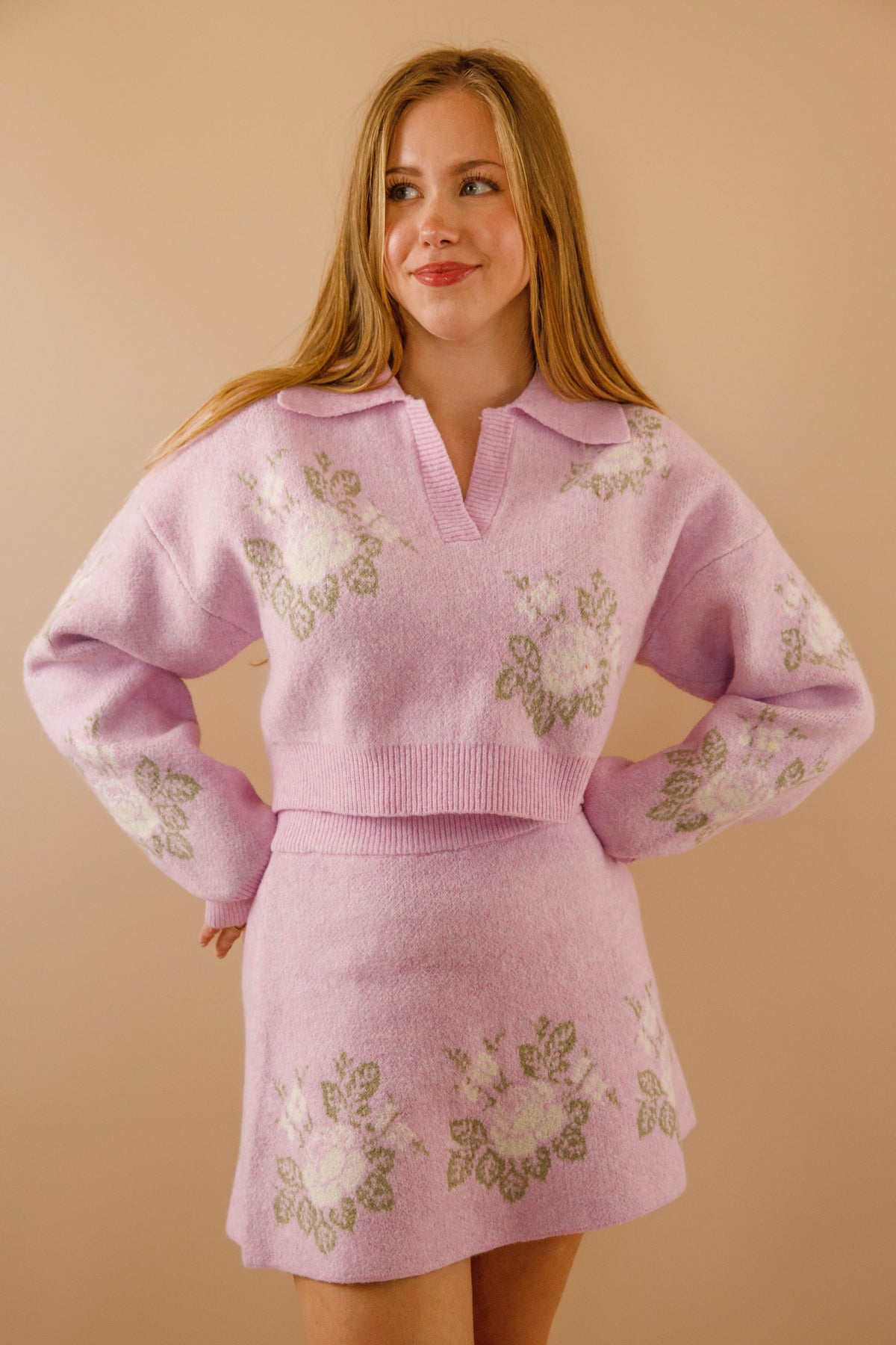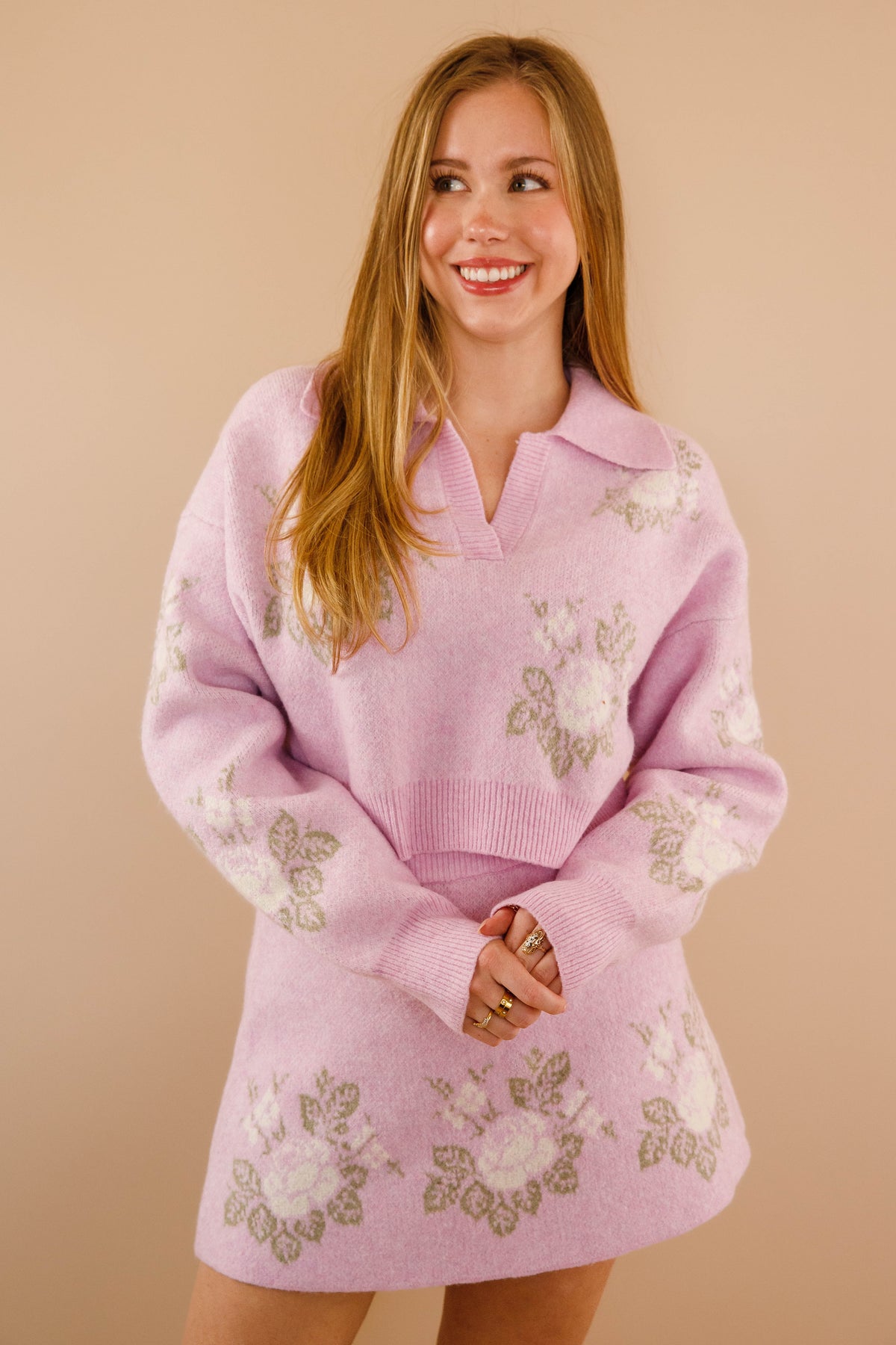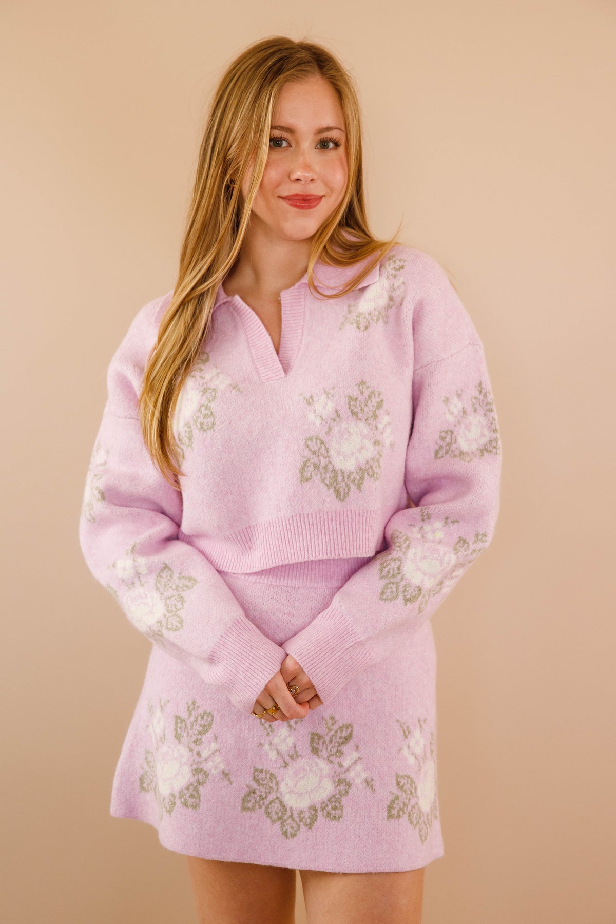 The Blossom Boulevard Cropped Sweater is your answer to effortless style that feels both put-together and genuinely comfortable! Adorned with a graceful floral design in peaceful ivory and sage tones, this knit instantly adds personality to your everyday wardrobe. The charming collared V-neckline features subtle ribbed texture that draws attention upward, while coordinating ribbed cuffs on the long sleeves create a cohesive, intentional finish. Made from soft, unlined knit fabric that moves with you, it offers breathability without sacrificing warmth.
