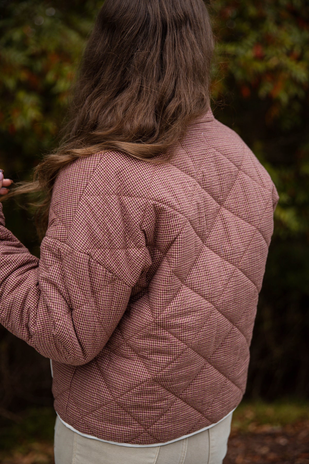 Stay cozy and chic all season long in our Micro Checker Print Button Down Quilted Jacket! This stylish fall layer features a classic micro-check pattern in warm neutral tones, detailed with contrast white trim and oversized front pockets for that perfectly polished finish. The quilted texture adds soft warmth without feeling bulky, making it the ideal throw-on piece for cool mornings and crisp evenings. Perfect for: Everyday wear, coffee runs, weekend markets, or layering for a polished outdoor look. Pair it with denim, corduroy pants, or leggings for a casual, effortlessly put-together fall outfit.