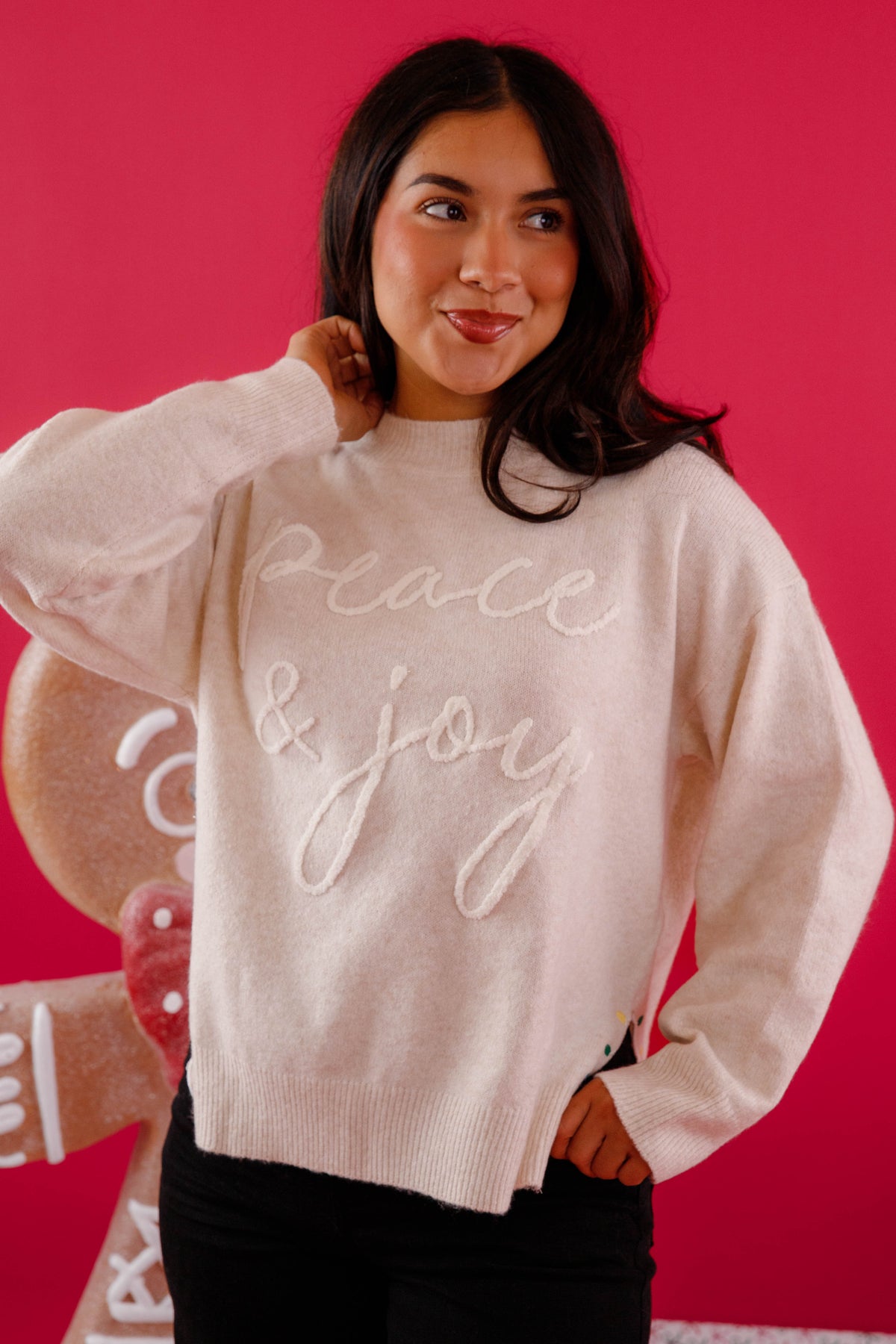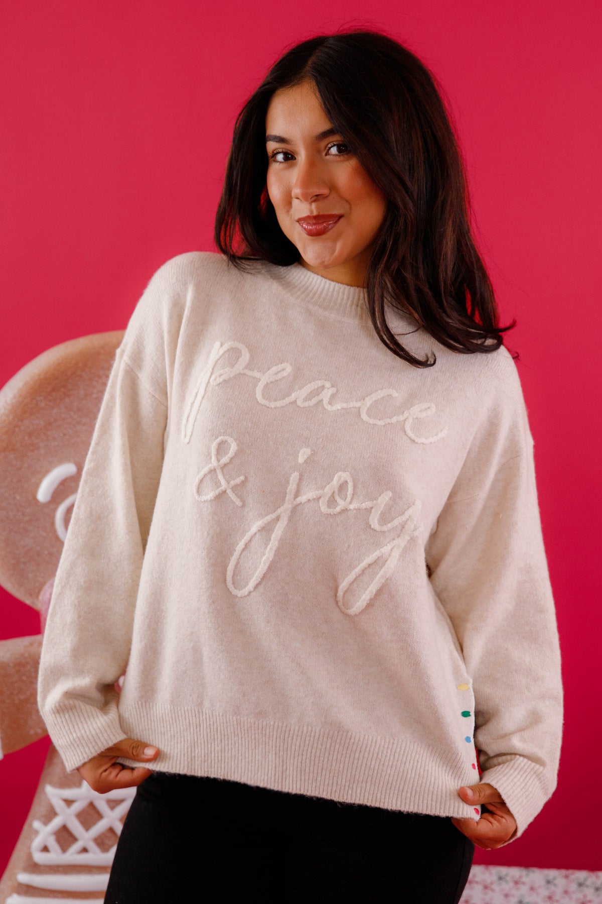 Peace and Joy Sweater- Neutral Holiday Sweater- Lelis Peace and Joy Christmas Lights Sweater