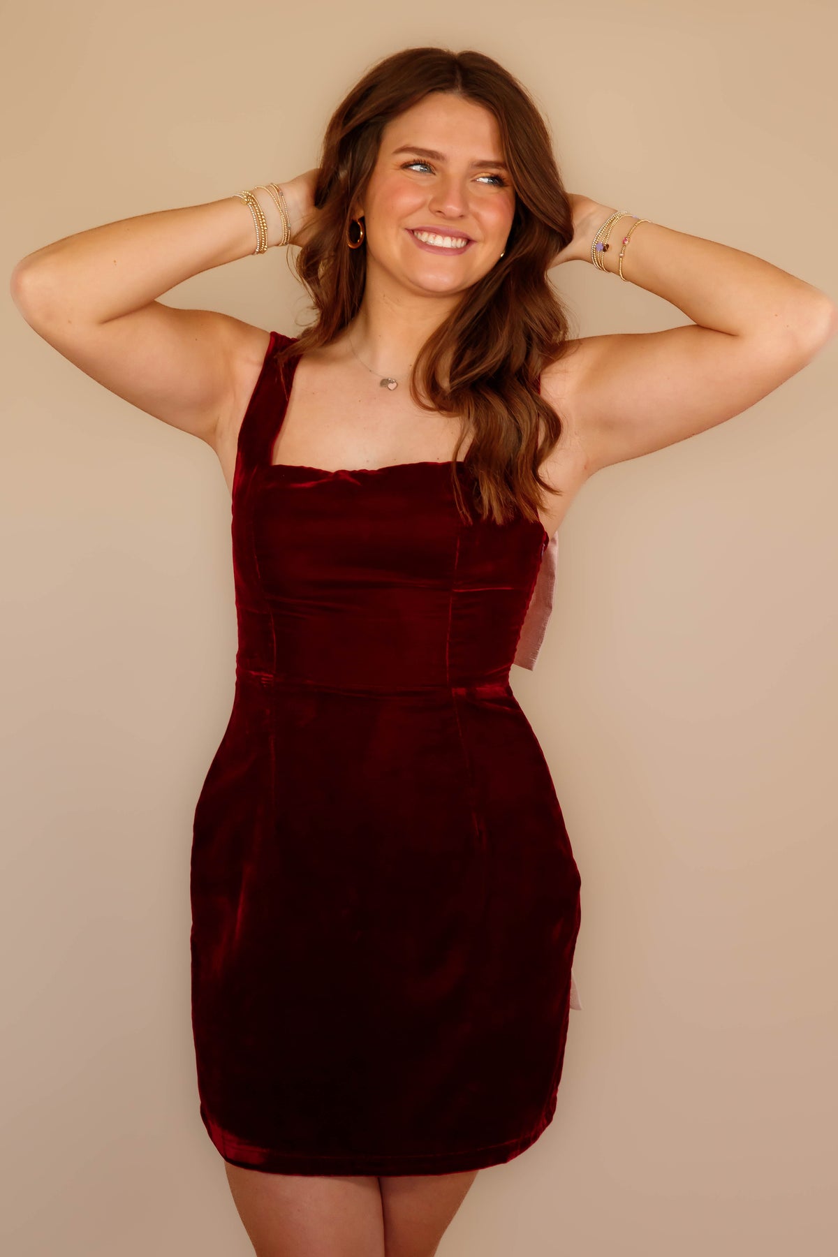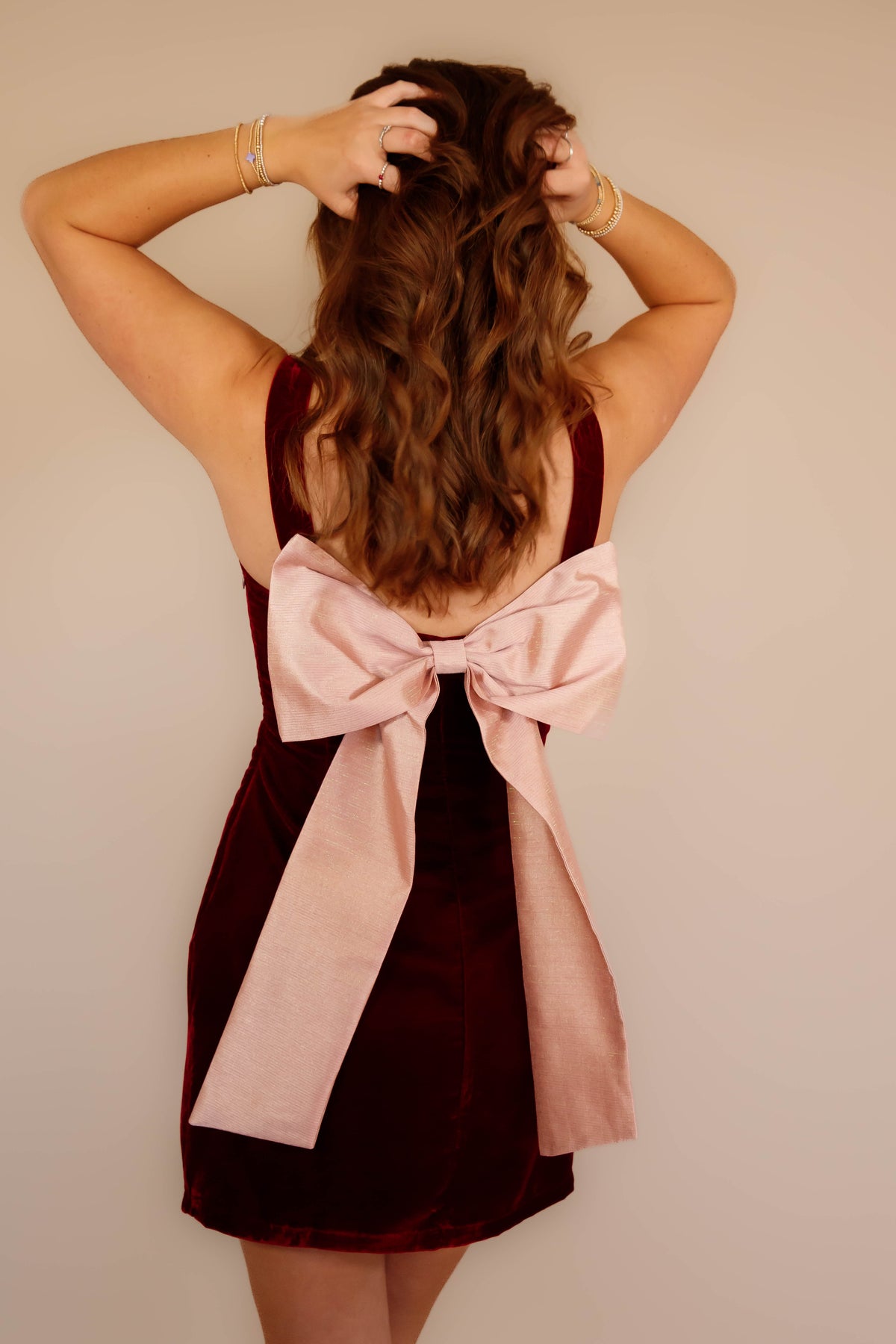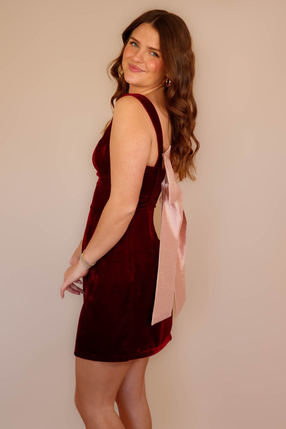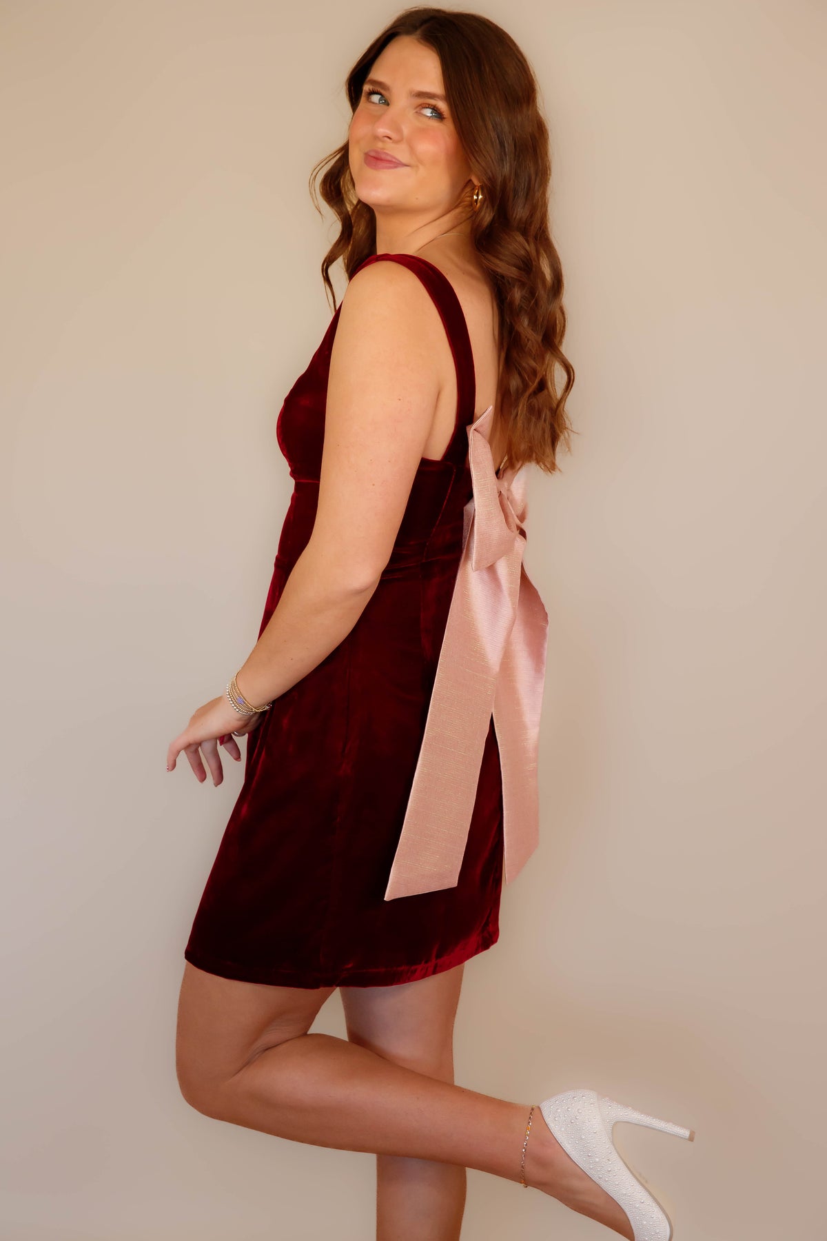 Make an unforgettable entrance in this exquisite velvet mini dress! The sumptuous velvet fabric feels as luxurious as it looks, while the square neckline frames your shoulders with timeless elegance. Sleeveless styling offers versatility—layer it with a blazer for sophistication or wear it bare for bold confidence. The real showstopper? A striking contrast bow detail adorning the back, ensuring you'll turn heads from every angle. In classic black, this dress transitions seamlessly from holiday parties to weekend celebrations. Whether you're dressing up for a special night out or want to feel extraordinary, this piece delivers the polish and personality that sets you apart!