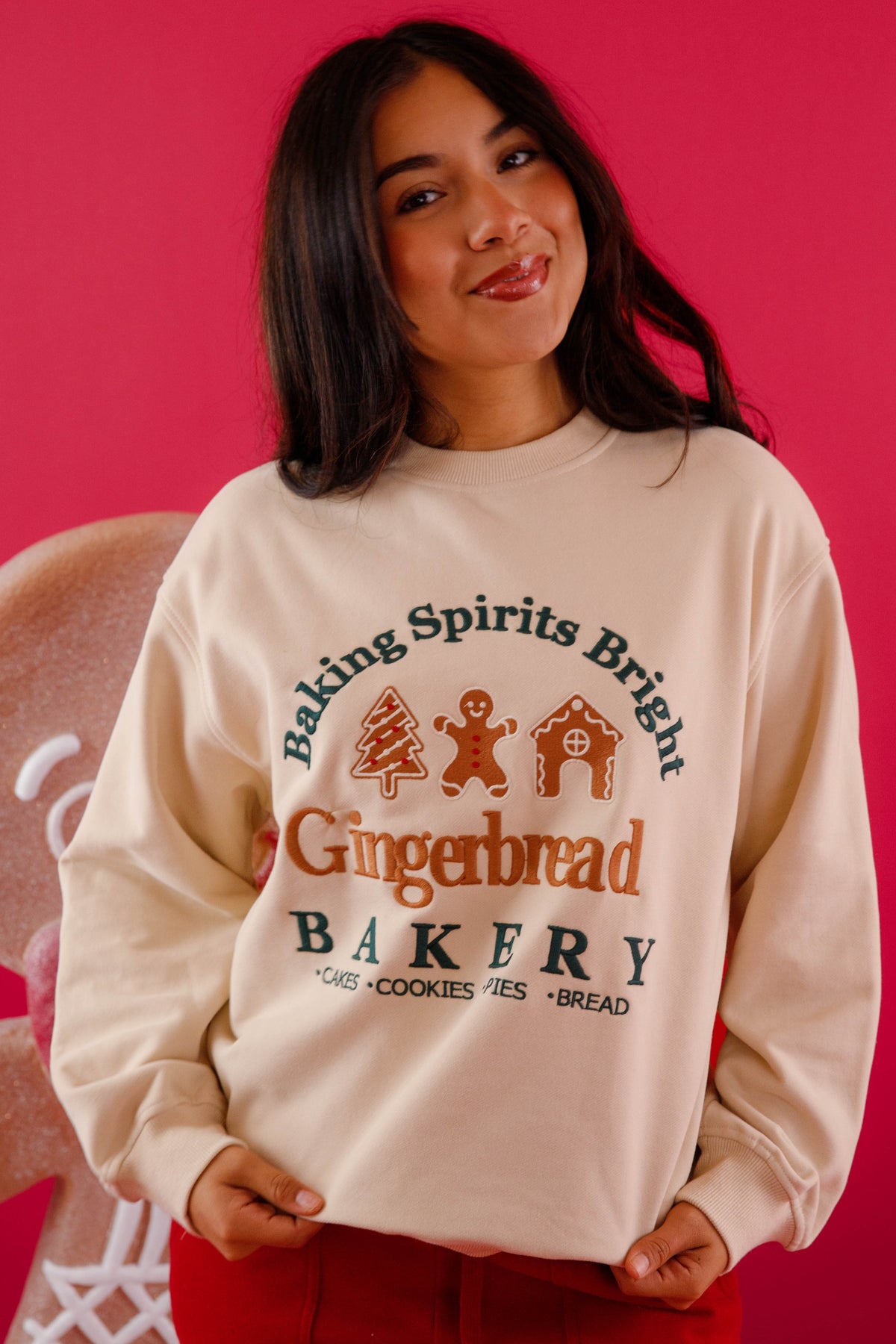 Baking Spirits Bright Gingerbread Sweatshirt- Festive Christmas Baking Sweatshirt- Lelis Gingerbread Embroidered Sweatshirt