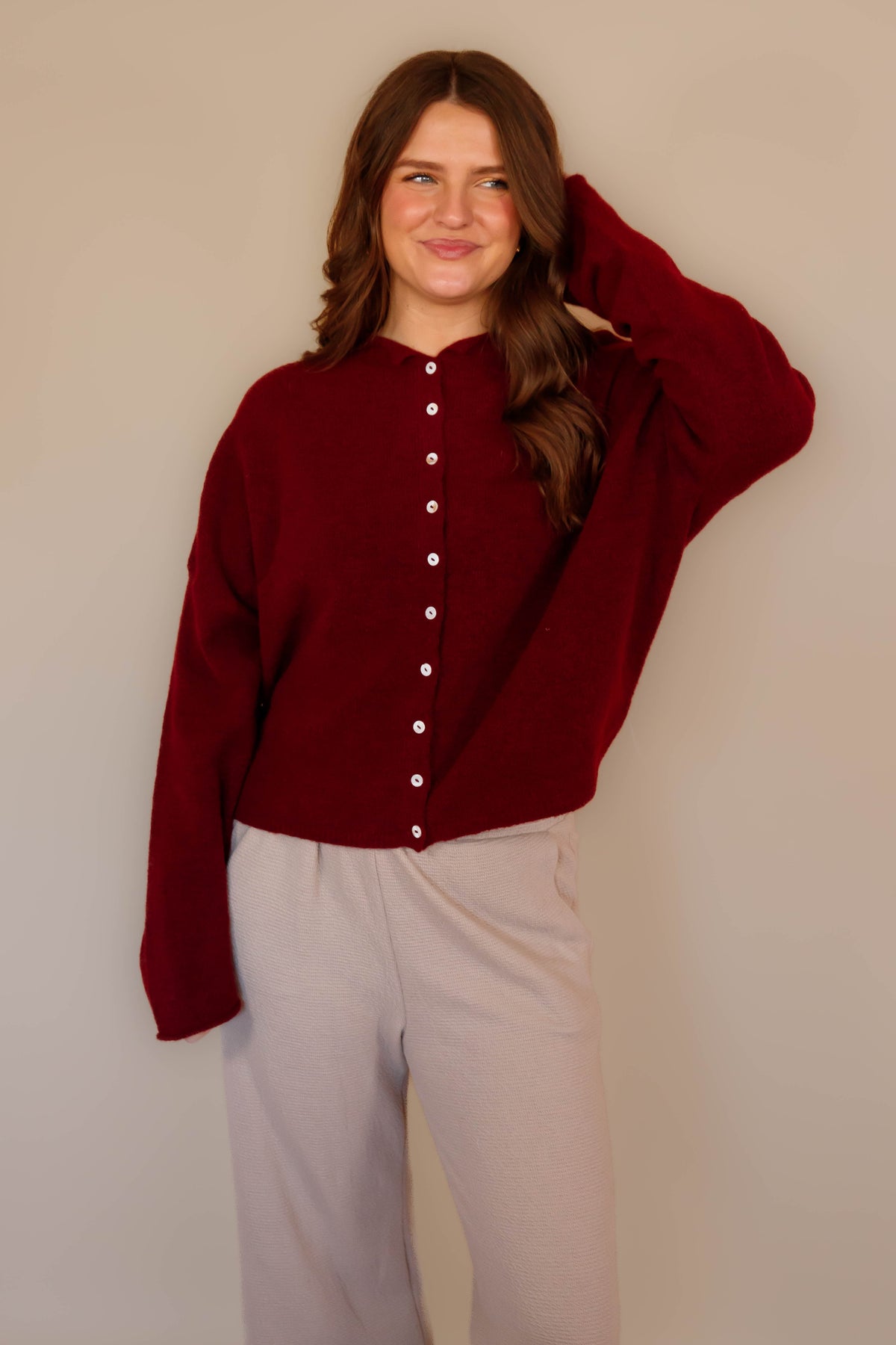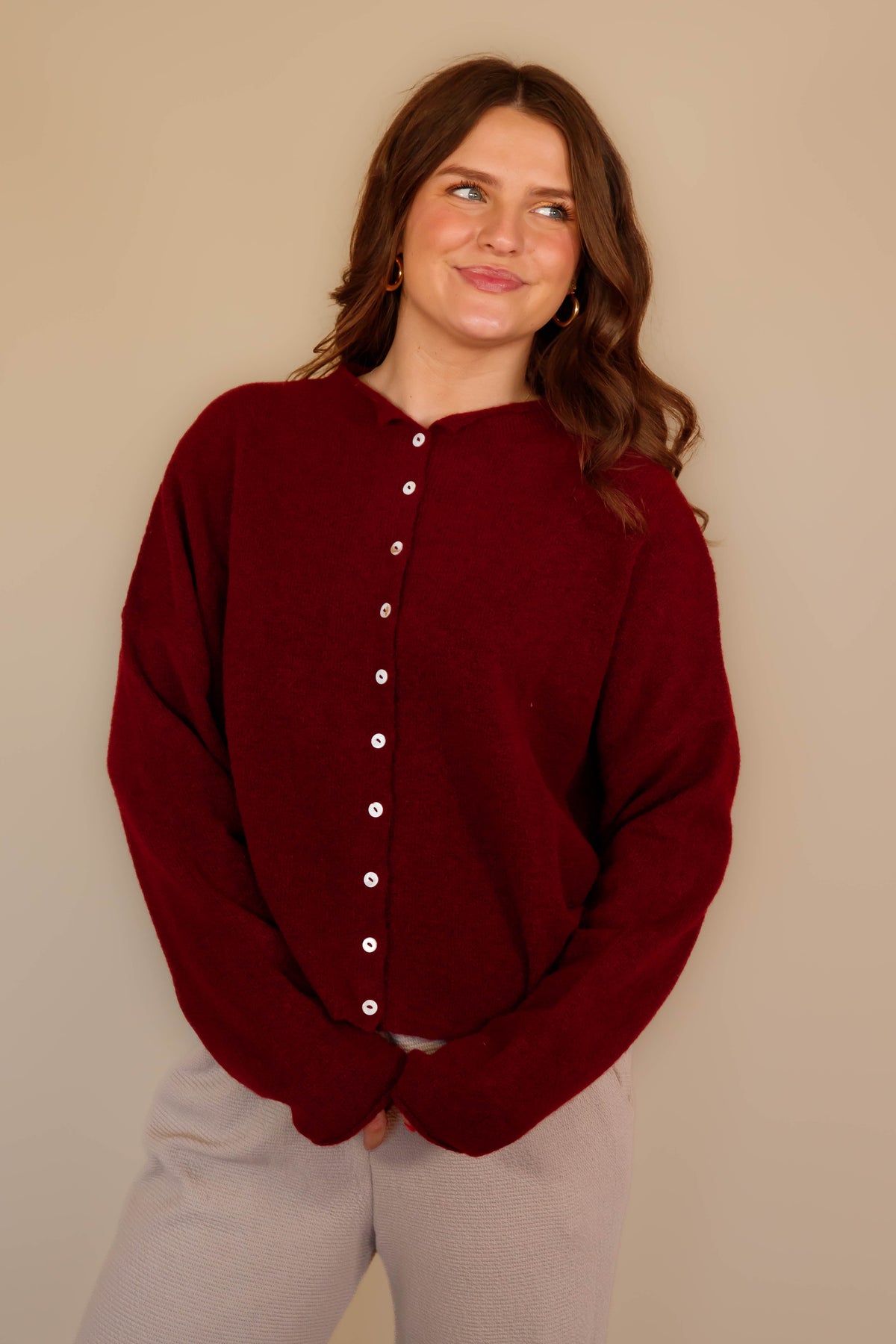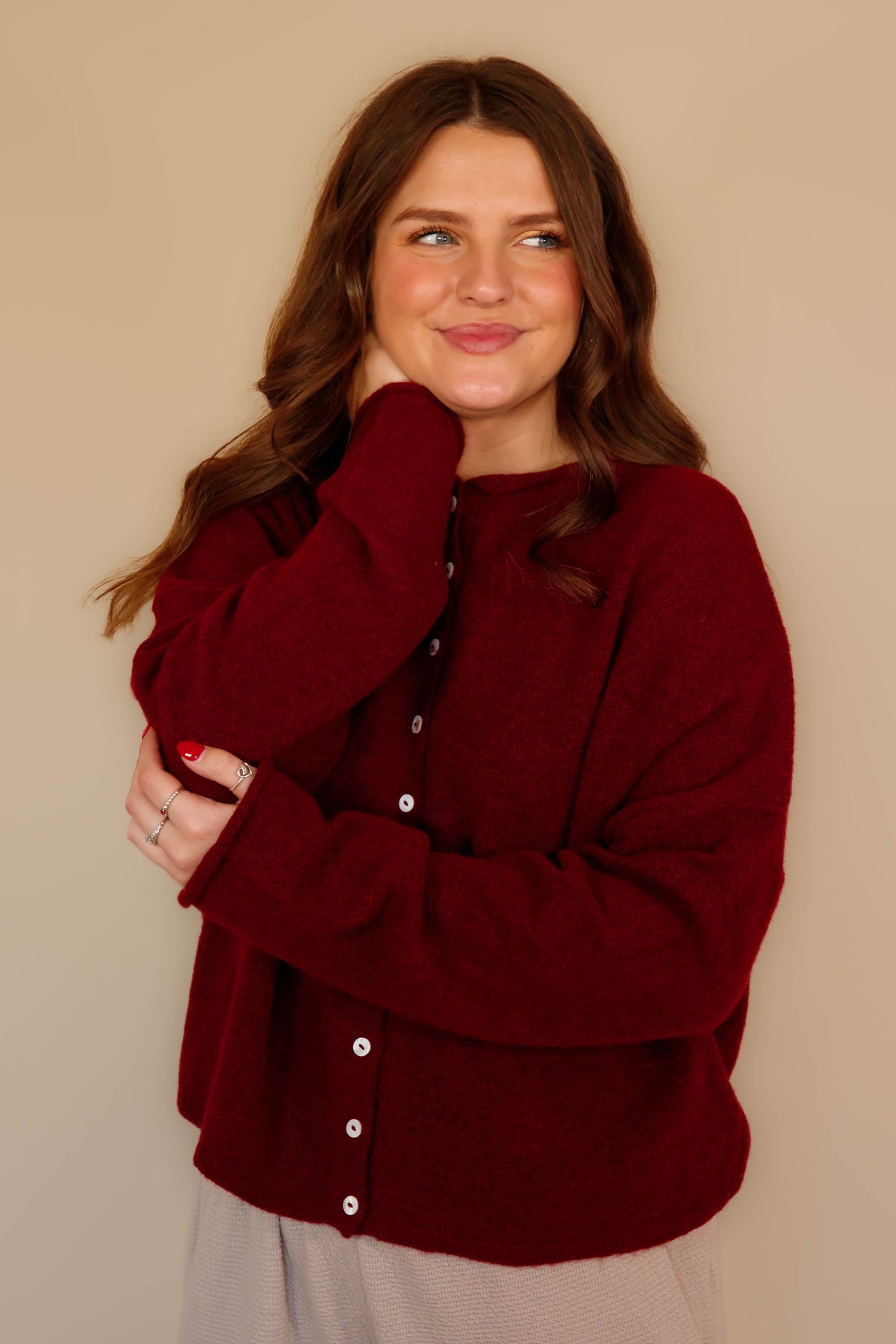 Discover the perfect layering essential with this cardigan, where thoughtful design meets everyday versatility. Rolled collar and cuffed sleeves add distinctive character, while the featherlight fabric drapes beautifully without bulk. The contemporary boxy cut flatters every frame, and strategically placed buttons give you complete control—wear it fully buttoned for structure or casually open for an effortless vibe. Whether you're dressing up basics or softening a bold outfit, this adaptable piece becomes an instant favorite in your rotation!