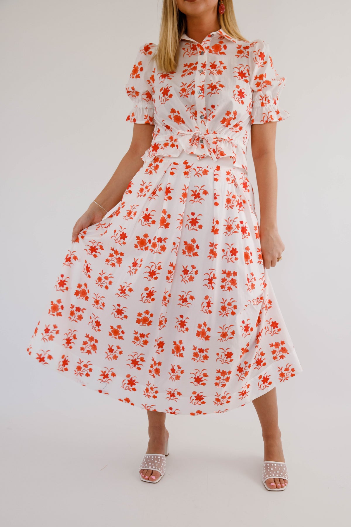 Elevate your everyday style with this enchanting botanical print midi skirt that seamlessly blends sophistication with comfort. The graceful pleated detailing creates flattering movement and dimension, while the convenient side zipper ensures an effortless fit. An elasticated back waistband provides all-day comfort without compromising on silhouette, and practical side pockets keep your essentials within reach. Perfect for transitioning from office to weekend adventures, this versatile piece becomes an instant wardrobe essential that works as hard as you do.